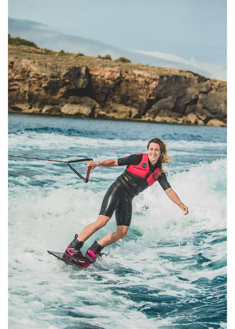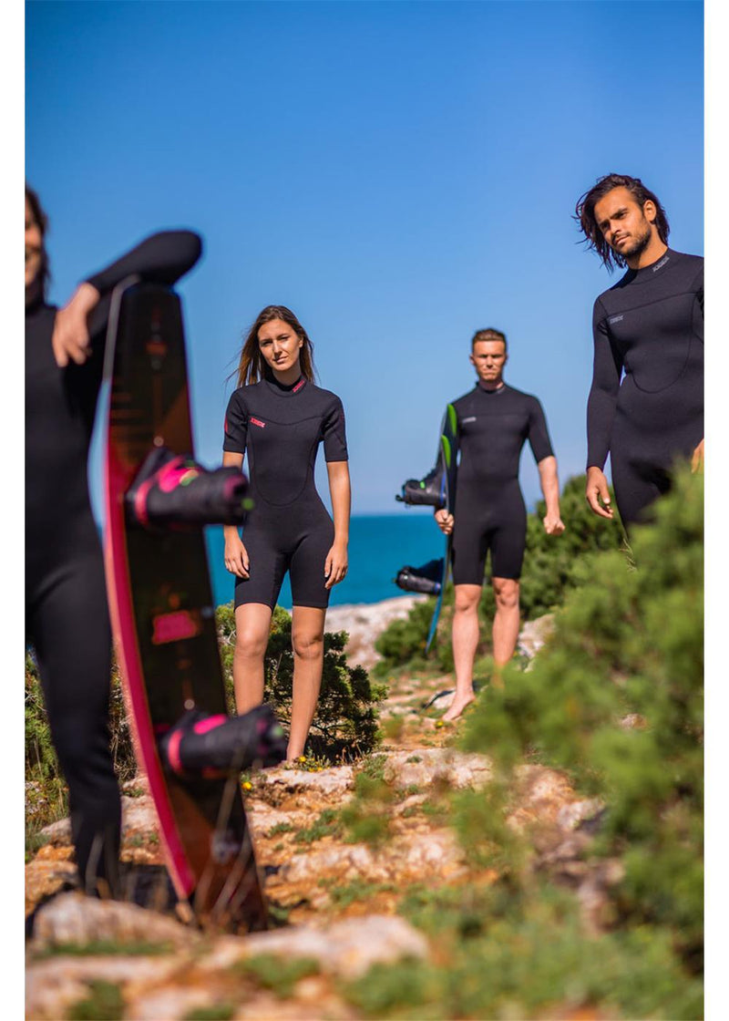 Selecting the perfect wetsuit depends on the water temperature and the type of watersports you plan to enjoy. Wakeboarding or slalom skiing demands a higher level of stretch, while tubing is more relaxed. Look for wetsuits with the right level of flexibility: chest zips offer more movement, while back zips are easier to put on. For colder waters, opt for high-end wetsuits like our steamers, designed with advanced techniques to keep you warm. Enjoying a summer tubing day? A shorty wetsuit is your ideal choice.