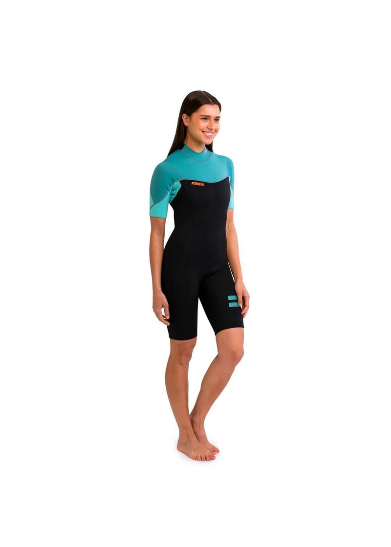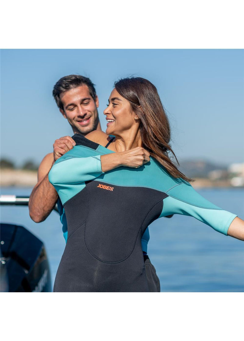 The Jobe Sofia 3/2mm Shorty Wetsuit Women Vintage Teal is the perfect summer flex. Designed with a feminine fit, long sleeves, and a shorty bottom, this wetsuit is ideal for warm days. Made from 50% lightweight limestone neoprene, it offers superior flexibility and performance. With 3mm neoprene on the chest and back, 2mm on other panels, a back zipper for easy entry, durable flatlock seams, and interior strengthening tape, the Sofia ensures a great fit and excellent comfort for all your summer water activities.
